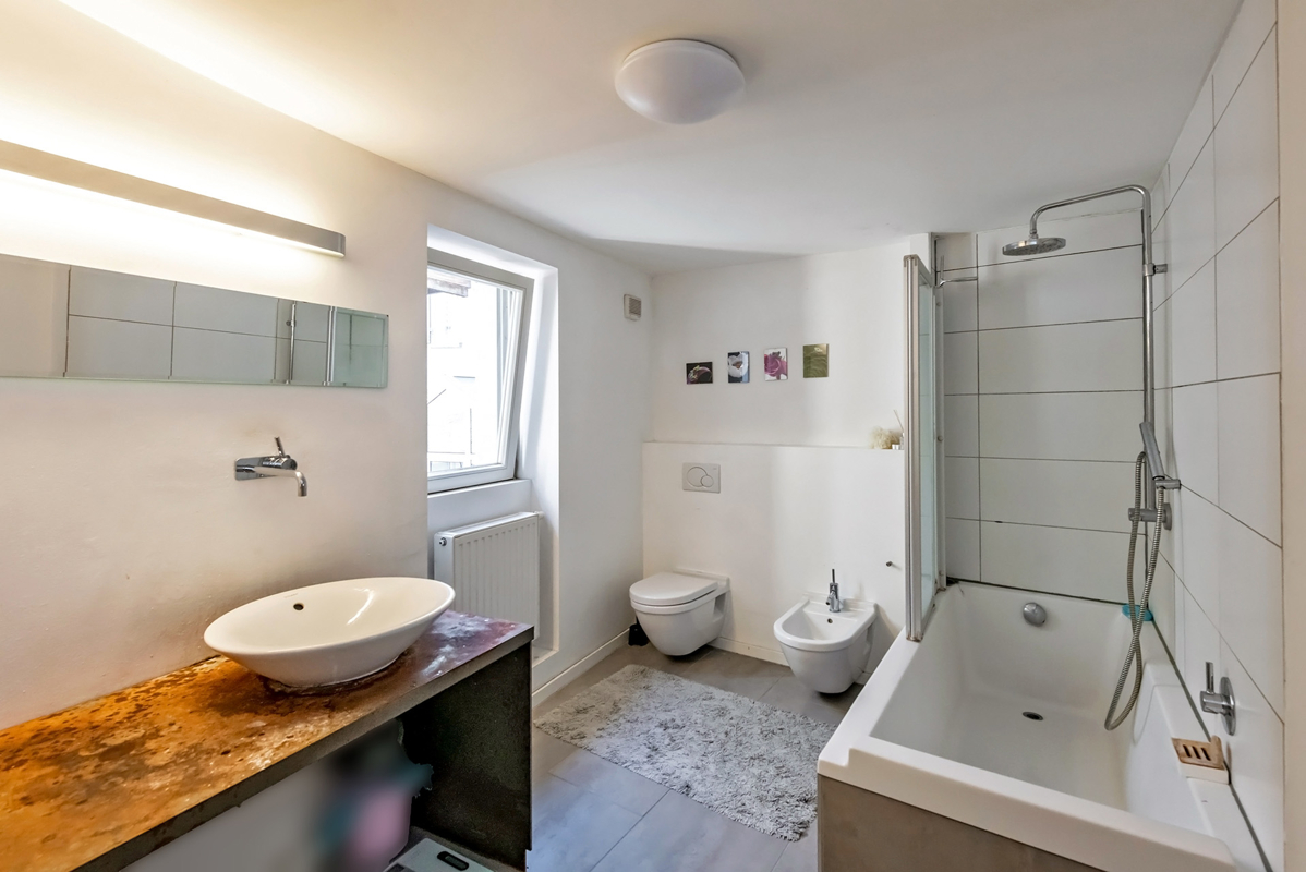 Verkaufsräume und Wohneinheiten unter einem DachDas historische Geschäfts- und Wohnhaus liegt im Zentrum von Bad Cannstatt direkt am belebten Marktplatz und steht unter Denkmalschutz. Diese günstige Lage bietet einen großen Zustrom an Laufkundschaft. Die stilvoll sanierte, sich über 3 Etagen erstreckende 8-Zimmer-Wohnung ist rentabel an Studenten vermietet. Das kernsanierte Haus ist in bestem Zustand und geprägt von modernem Wohnkomfort, kombiniert mit dem historischen Charme des Altstadtgebäudes. Die umfassenden Sanierungen fanden zwischen 2008 und 2020 statt, wobei der Denkmalschutz gewahrt und moderne Standards integriert wurden. Die charmante Gewerbeeinheit beherbergt seit vielen Jahren ein florierendes Bistro / Geschäft mit italienischen Spezialitäten.